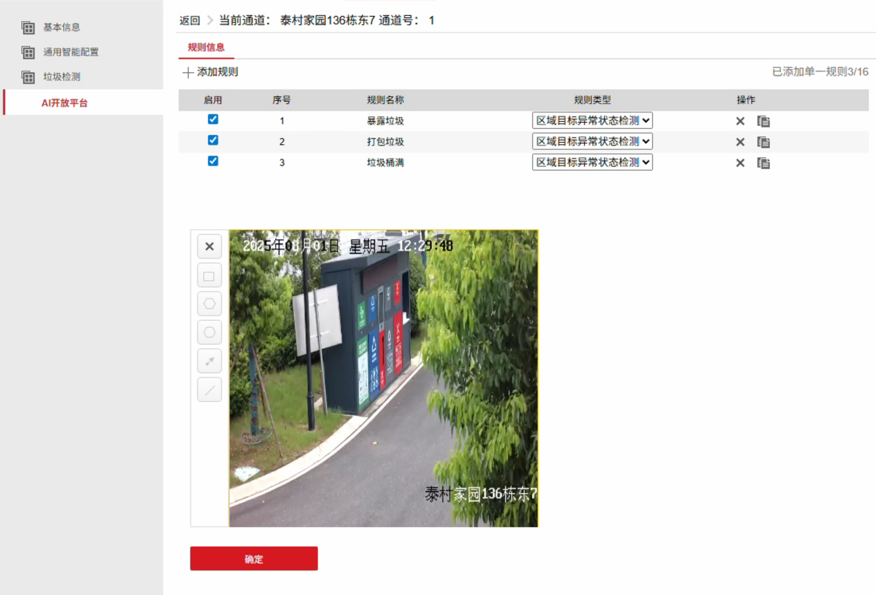 Smart waste monitoring: AI cameras at six waste stations automatically detected improper dumping, triggered voice alerts, and reported incidents, forming a complete “detect–remind–handle–track” loop.