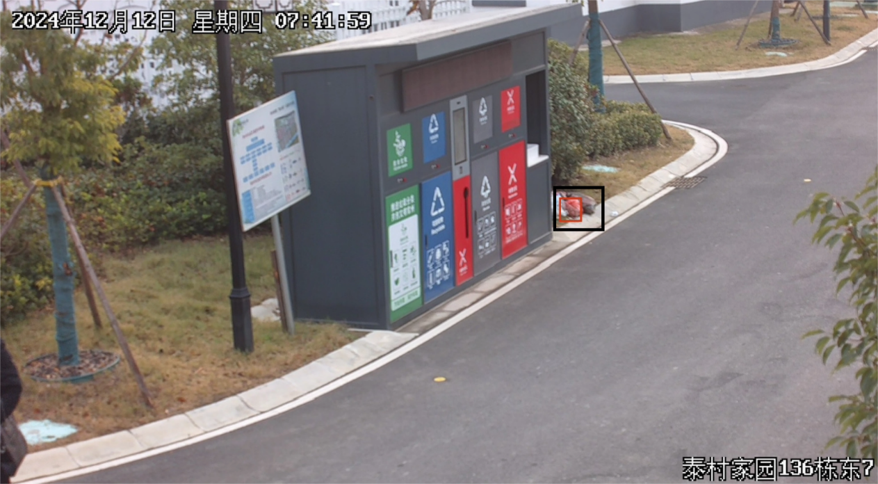 Smart waste monitoring: AI cameras at six waste stations automatically detected improper dumping, triggered voice alerts, and reported incidents, forming a complete “detect–remind–handle–track” loop.
